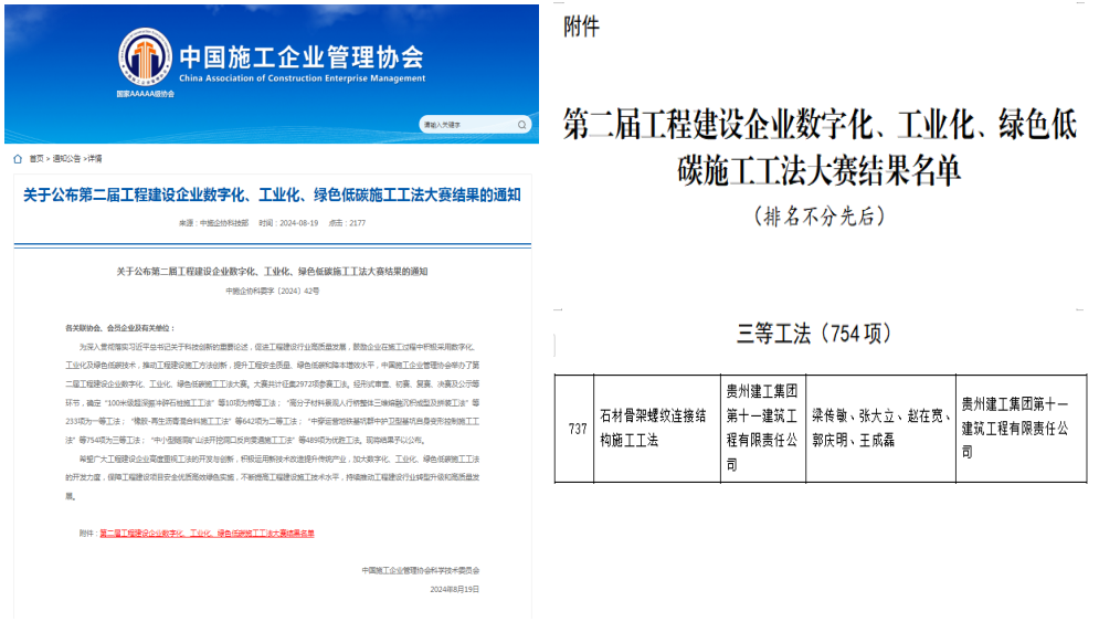 喜讯!公司一项工法在中国施工企业管理协会工法大赛中获奖